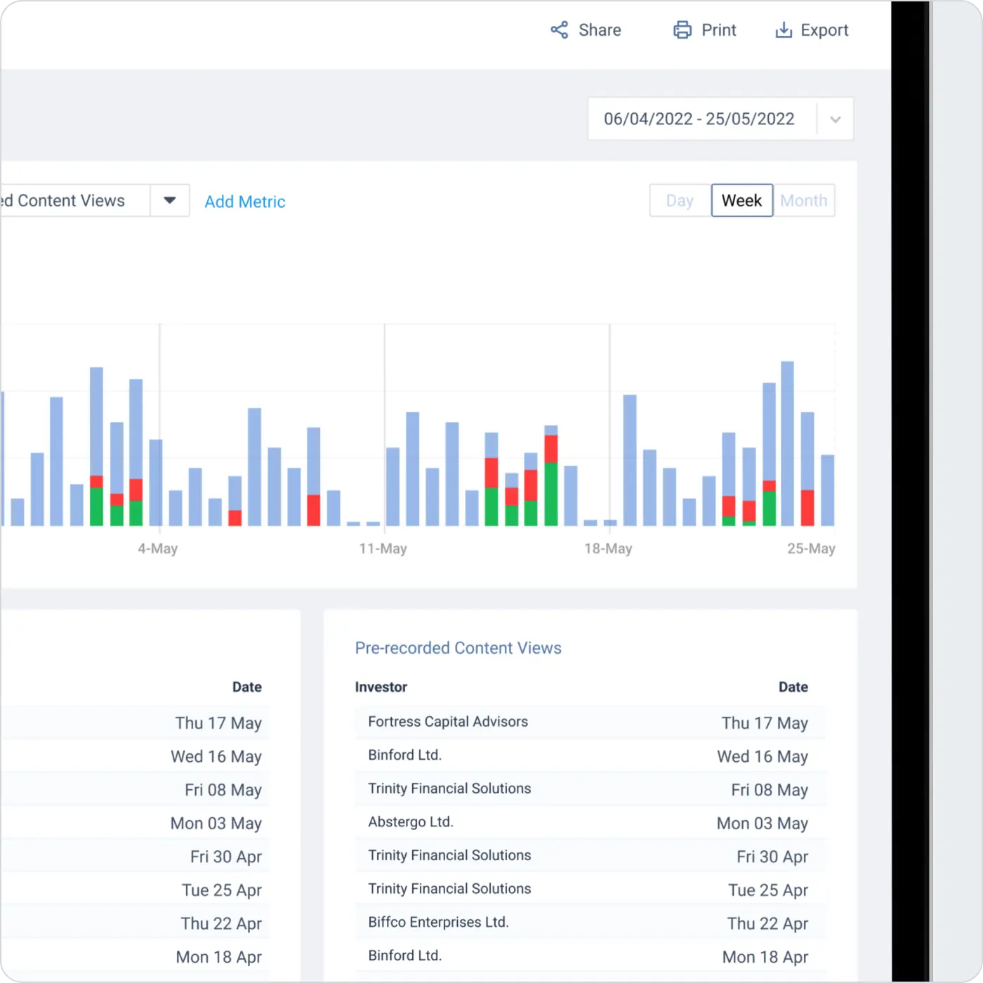Real‑time analytics dashboard delivering market intelligence, trends, and historical data for decision‑making.