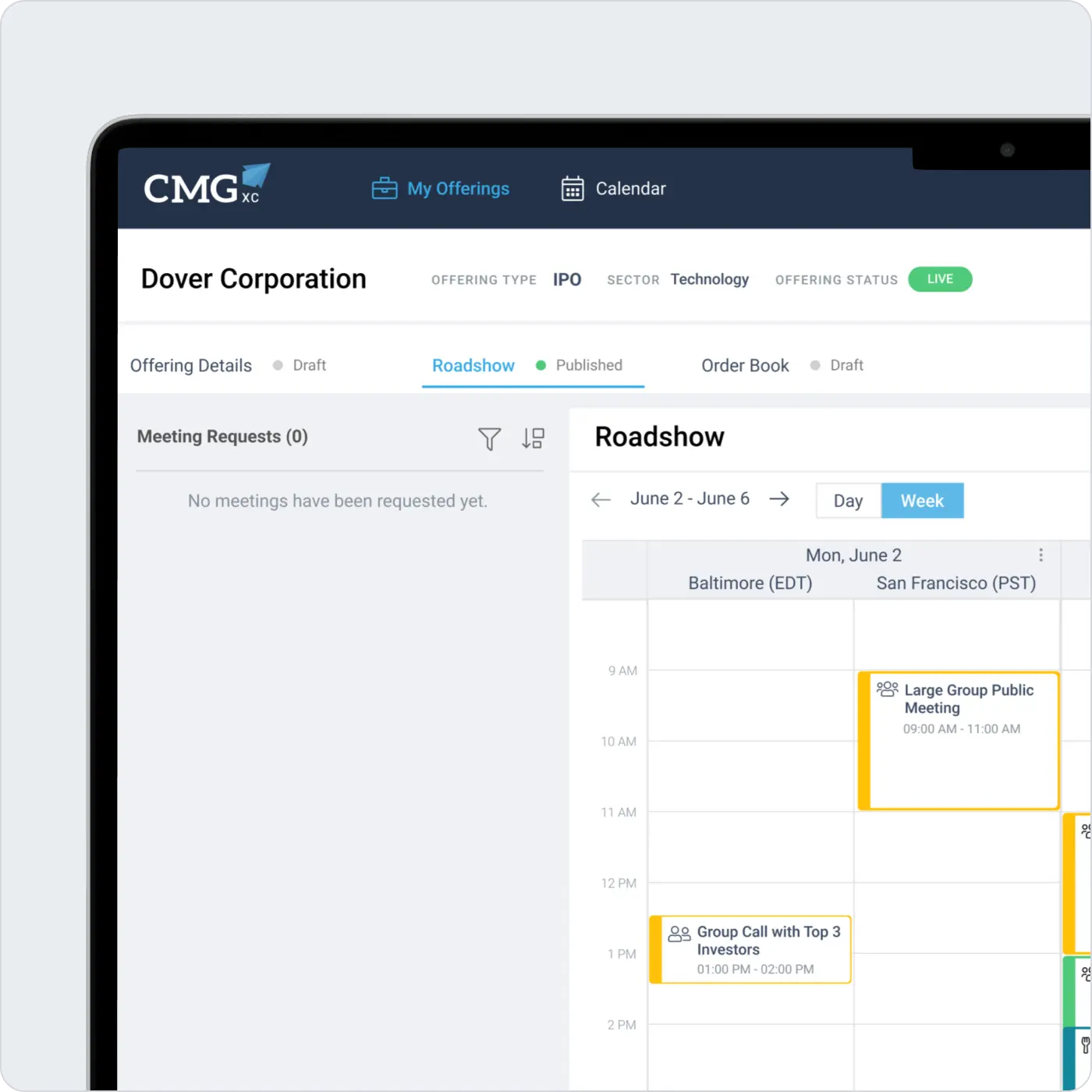 A centralized workflow tool for managing public offering launches, order book creation, and allocation confirmation.